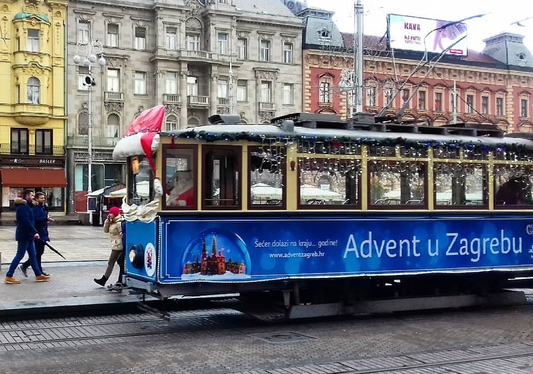 I eto vas na glavnom gradskom trgu … Tu je prometovao božićni tramvaj, koji je radio krug oko centra grada te je jedan od najvažnijih putnika svake vožnje bio Djed Božičnjak okružen božičnim pjesmama / 25 kn, i u svaku vožnju je uključen mali poklon za svako dijete i nezaboravne uspomene …