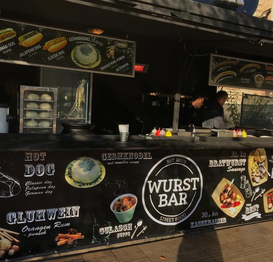 Nakon “minglanja” po “Ledenoj bajci” na putu prema glavnom gradskom trgu nailazite na poznato “Fooliranje”, smješteno na Strosmayerov trg … Ako mene pitate onda je ovo mjesto gdje ćete jesti na Adventu … Najbolji street food Adventa koji sam probala bio je ovdje …Ja sam jela kobasicu sa hrpom povrća i nekim kričavo rozim umakom za kojeg iskreno nemam pojma što je bio ali bilo je odlično / 30 kn, i za desert germknedlu koju već nekoliko godina pokušavam probati ali nikako mi to nije pošlo za rukom … Sviđa mi se / 35 kn … Frendica je jela patku umotanu u neki mlinac sa umakom od naranče i moram reći da je to stvarno bio puni pogodak i prefino / 45 kn … Klinci kao i obično različite vrste hot dogova / 20-tak kn … Kuhano vino je ono što Advent zaista čini Adventom tako da smo uglavnom to i pili / 15 kn … Iako moram priznati da je ponuda bila i više nego kreativna … Primjerice vrući božični mojito sa šljokicama je nešto što sam namjeravala isprobati ali na kraju nemam pojma zašto nisam …