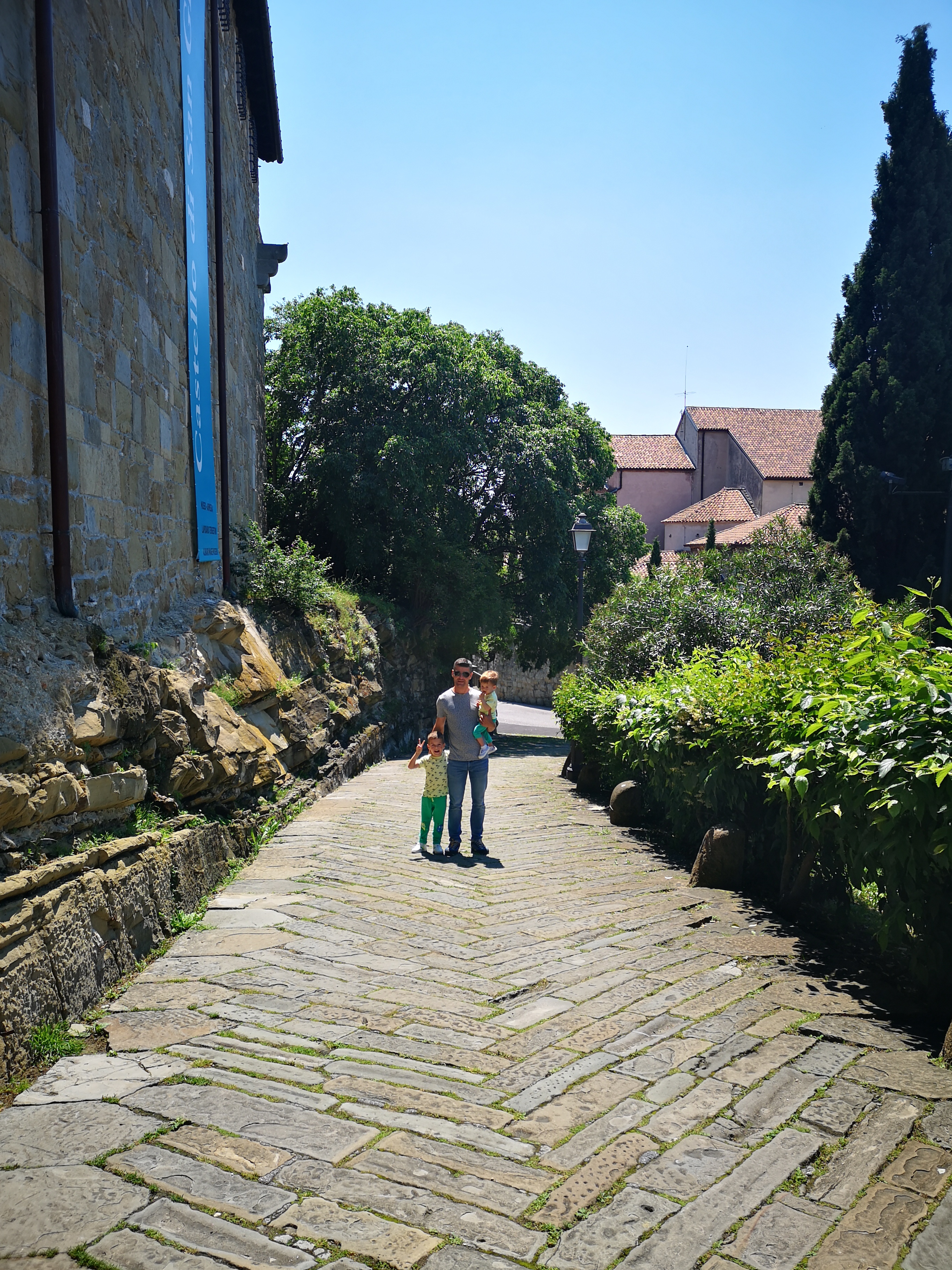 Za prvu postaju u Trstu odluka pada na dvorac San Giusto. Da budem iskrena odluka za San Giusto potaknuta je postom o Trstu od Kruzova, jer kad već nisi pripremljen onda slušaš pametnije i iskusnije :). I bingo, eto nas. Put do dvorca je dobro označen kroz cijeli grad tako da nakon što pratiš table za centar, “sretneš” i table za Castello di San Giusto i ne možeš fulati. Sparkirali smo se odmah uz zidine dvorca na parkingu koji se ne plaća. Krećemo.