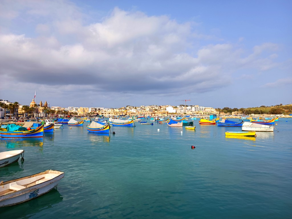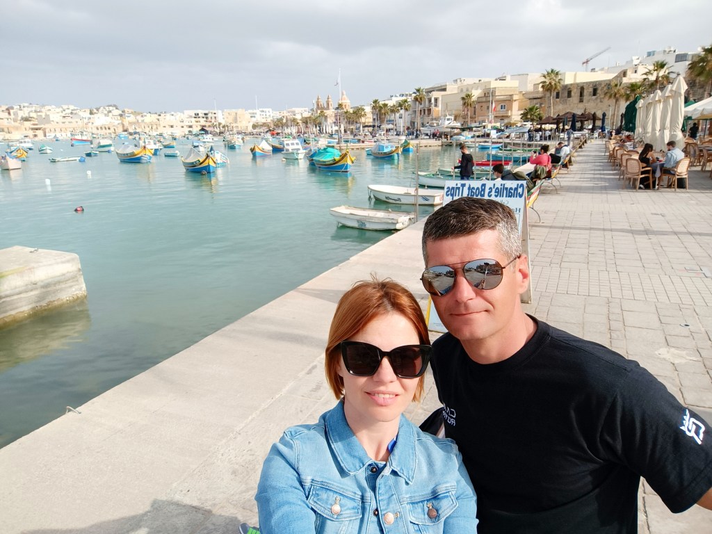 Nakon što smo sletjeli na Maltu i uzeli rent-a-car privikavamo se na vožnju lijevom stranom ceste i krećemo prema Marsaxlokku. Marsaxlokk je ribarsko mjesto smješteno na jugoistočnom dijelu Malte. Bez obzira na laganu gužvu na cesti od aerodroma do Marsaxlokka nam je trebalo cca 15 minuta. Marsaxlokk je malo i slikovito ribarsko mjestašce a značenje naziva mjesta je jugoistočna luka. Radi se o najvećoj ribarskoj luci na Malti. Tako je bilo od davnina a i dan danas većina ribe koja se prodaje na otoku dolazi iz ovog mjesta. Tokom tjedna se riba prodaje u Marsi gdje se ugostitelji, vlasnici restorana i svi drugi zainteresirani skupljaju kako bi kupili ribu direktno od ribara, a nedjeljom se na ribljoj tržnici u Marsaxlokku može kupiti ribu direktno od ribara i tada je u selu najveća gužva pa je možda i malo teže naći parking. Mi nismo bili u nedjelju pa nismo imali nikakvog problema s parkingom.