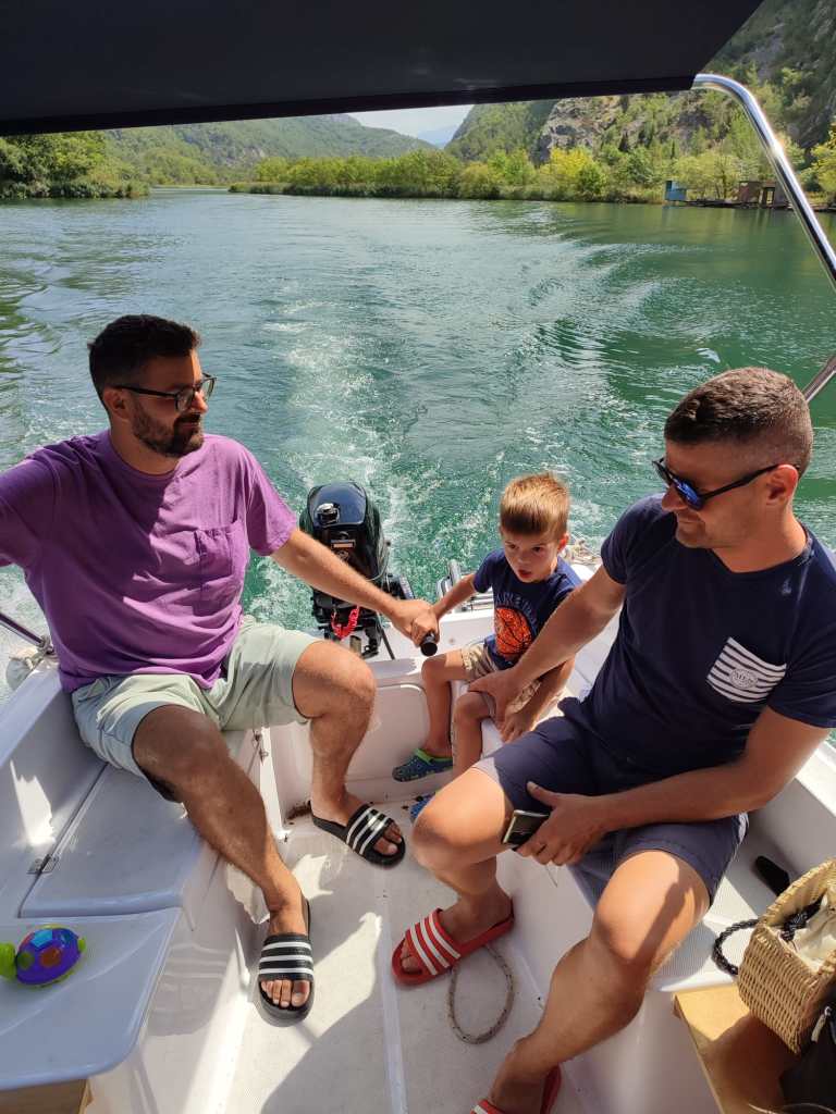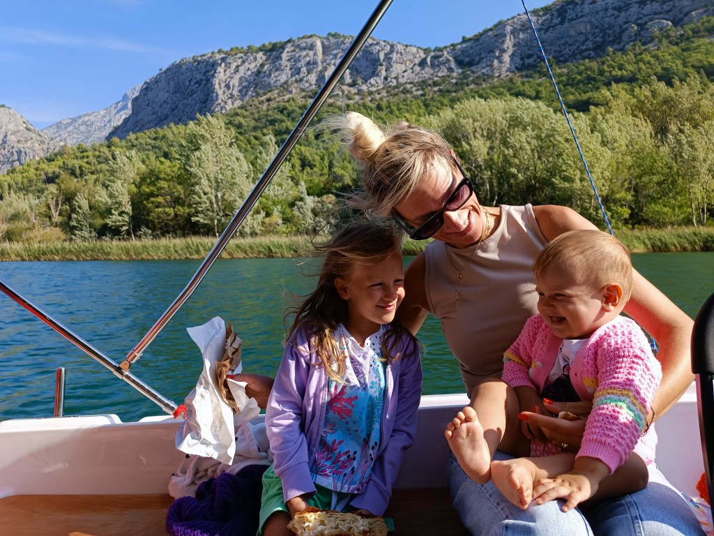 Jedno jutro odvojili smo za izlet brodićem po kanjonu rijeke Cetine kako bismo u srcu kanjona rijeke Cetine, na samo šest kilometara od grada Omiša, posjetili poznato izletište Radmanove mlinice. U toj zelenoj oazi očekuje vas pregršt aktivnosti, od najpopularnijeg raftinga, preko slobodnog penjanja, vožnje kanuom i zip-line-om, ali i osvježavajuće kupanje na obližnoj riječnoj plaži. Pod zaklonom visokih stabala i pogledom na stara mlinska kola možete uživati u bogatom izboru domaćih riječnih specijaliteta poput žaba, jegulja i pastrva, ali ne zaboravite probati i domaći soparnik i kruh ispod peke. Ovdje se nalazi i lijep park za djecu kao i mala plaža na kojoj se moguće okupati u Cetini. Mi smo iznajmili čamac na tri sata što je bilo i više nego dovoljno. Od Omiša do Radmanovih mlinica nam je trebalo cca 45 minuta te isto toliko za povratak, a sat i 15 minuta smo iskoristili za uživanje u prirodi. Cijana najma čamca je bila 400 kn. Mi smo stigli oko 10 sati ujutro što se pokazalo jako dobrim jer smo došli prvi. Kasnije je već poprilično zagužvalo.