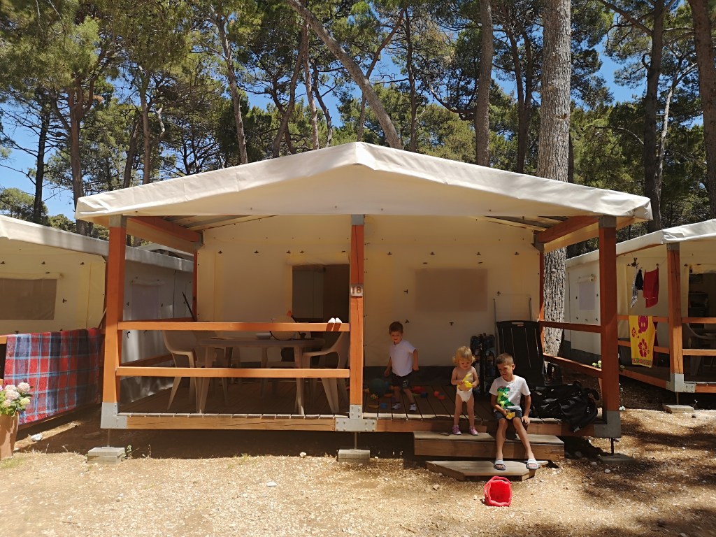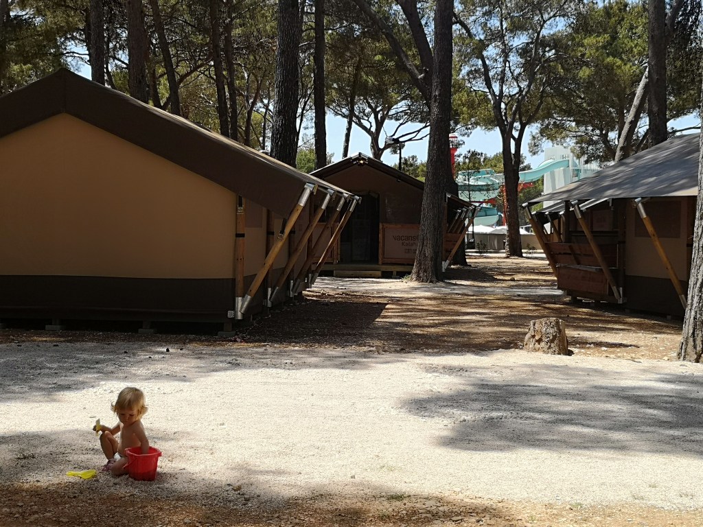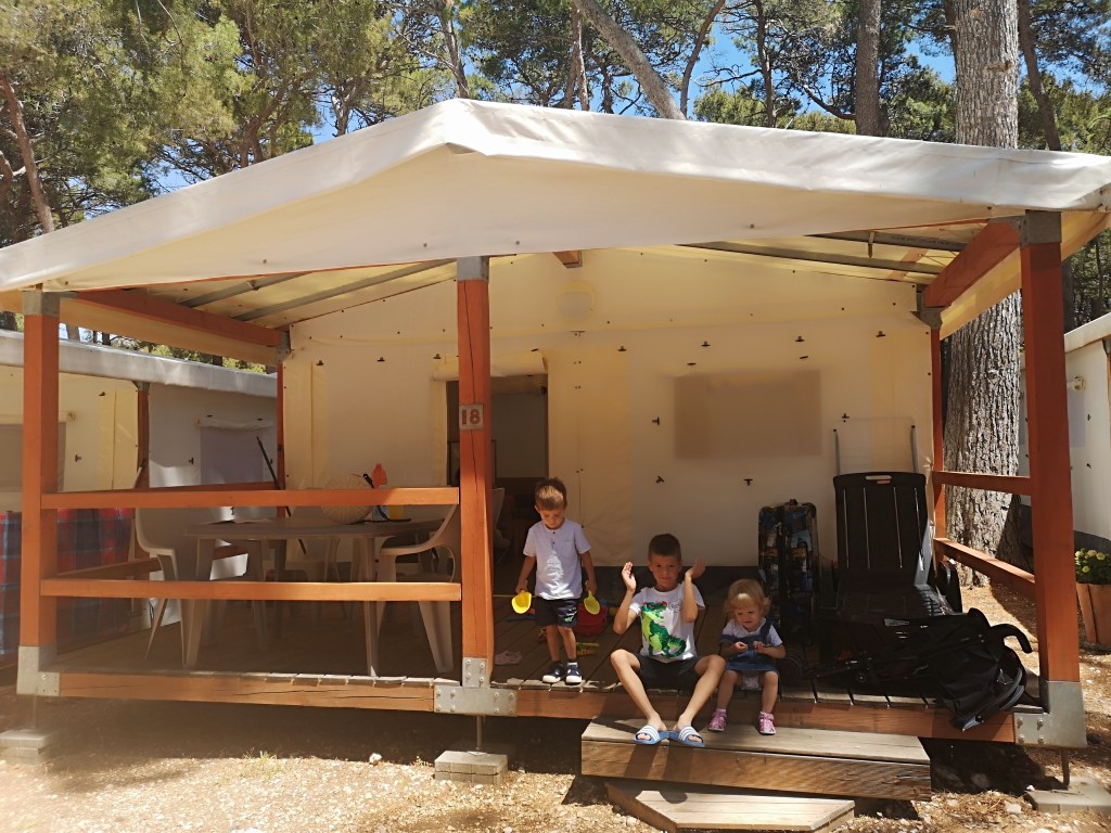 Mi smo se na Lošinj zaputili u prvoj Covid godini jer sam naišla na povoljnu ponudu za glamping u kampu Čikat. Ovaj “izlet” možemo smatrati početkom našeg “kamperskog života”. Uglavnom radi se o češkoj tvtki koja renta navedene šatore u neposrednoj blizini aquaparka Čikat. Šatori su prostrani s dvije spavače sobe, kuhinjom i dnevnim boravkom te prostranom terasom. Opremljeni su hladnjakom normalne veličine, aparatom za vodu te pločom za kuhanje kao i svom ostalom potrebnom opremom.