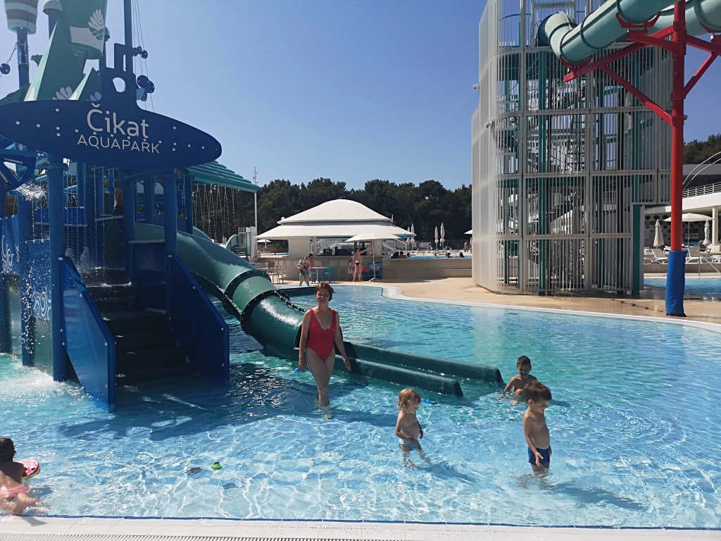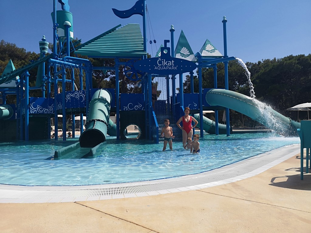 Ono što je nama bilo fora je činjenica da smo bili smješteni svega minutu hoda oda Aquaparka Čikat koji je za goste kampa besplatan. Aquapark Čikat, koji se prostire na 6 300 m2 i sadrži više od 2 400 m2 bazena i vodenih sadržaja s morskom vodom, otvorio je svoja vrata u srpnju 2015.Aquapark nalazi se u kampu Čikat, u srcu borove šume. Ovo je prvi u Hrvatskoj aquapark na otoku. Savršeno je mjesto za opuštanje u kojem se može zabaviti cijela obitelj.
